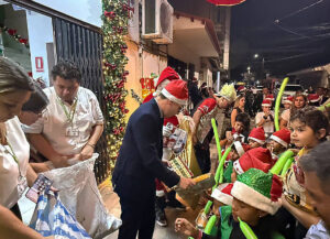 Prensa FGE, Santa Cruz (16.12.25).-* El Fiscal Departamental de Santa Cruz, Alberto Zeballos Flores, en el marco de los lineamientos establecidos por el Fiscal General del Estado, Roger Mariaca Montenegro, de acercamiento con la sociedad, realizó el encendido oficial de luces navideñas del edificio central de la Fiscalía Departamental de Santa Cruz, en un emotivo acto junto a los niños de la Fundación de Niños “Mi Casa” y servidores del Ministerio Público de la capital Cruceña.